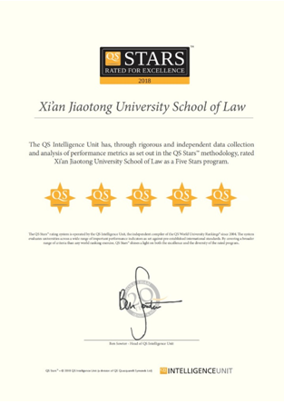 QS全球教育集团中国总监张瓛博士(Dr. Christina Yan Zhang, China Director, QS Intelligence Unit)表示,这是QS首次开展的法学院星级认证,也是世界上首次开展的法学院星级认证。乐动在线官网法学院院长单文华教授则表示,这次认证评估是对西安交大法学院建院十年来坚持的国际化法学教育的一种充分肯定,也是对西安交大法学学科全体师生长期以来发扬“西迁精神”艰苦创业所取得的成果的一种高度认可。他同时强调,评估是一次全面的国际体检,在肯定成绩的同时也揭示了我们和国内外顶尖法学院之间存在的各种差距;法学院同事同学们需要也必将更加同心勠力,为缩短差距,早日把法学院建设成为国际引领型的法学院而不懈奋斗。