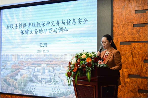 乐动在线官网信息安全法律研究中心副主任王玥作了《云服务提供者版权保护与信息安全保障义务的冲突与调和》的主题发言。